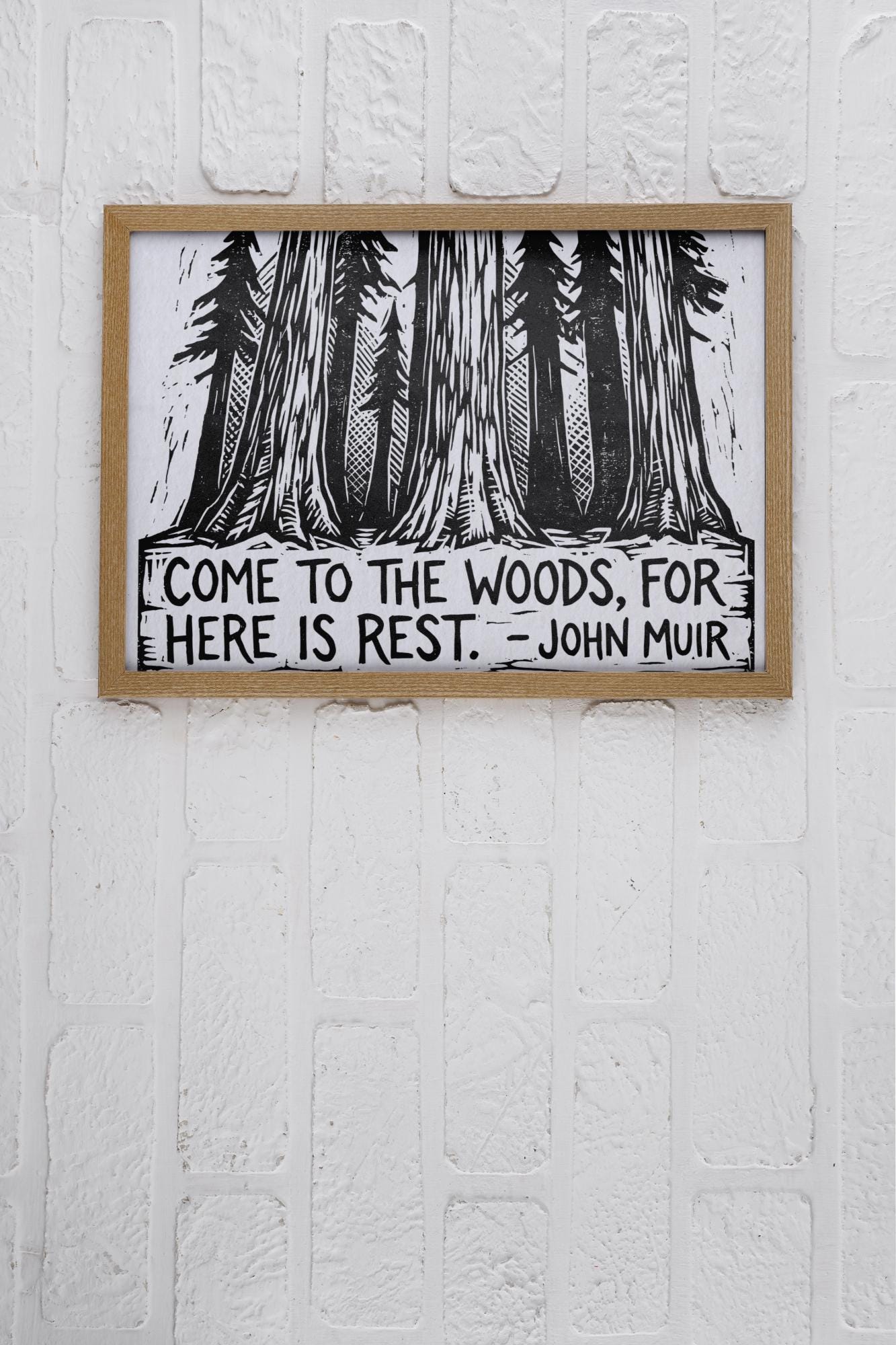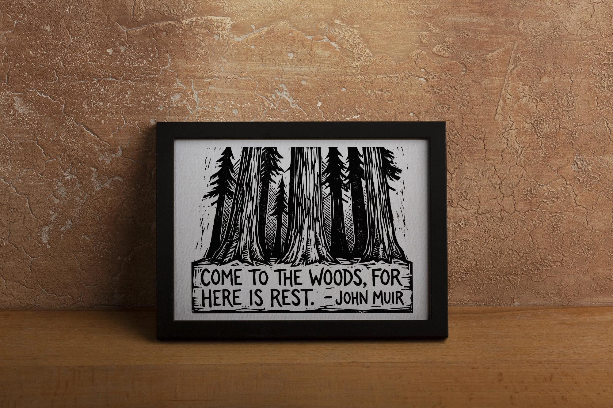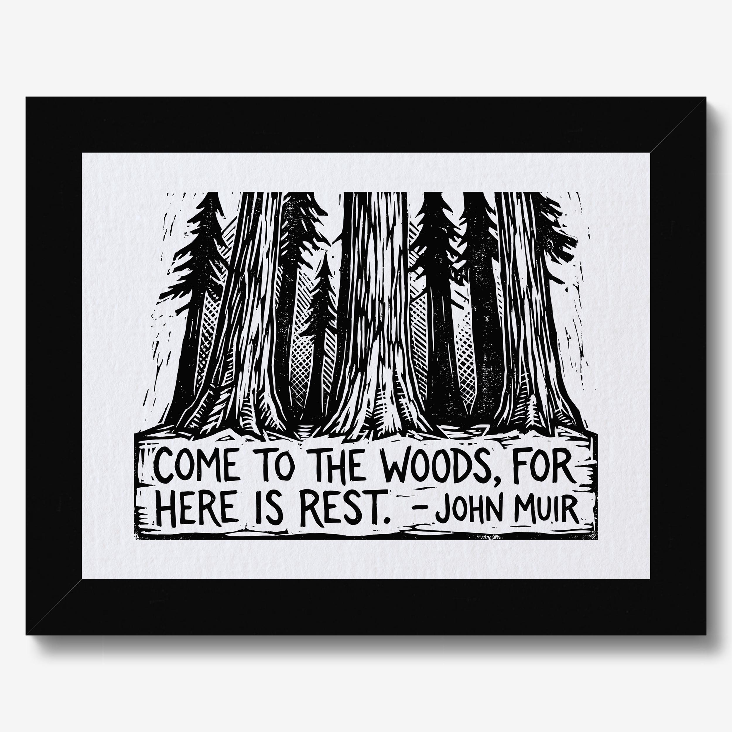 Tags: inspirational quote, relief print art, handmade relief, typography print, John Muir Quote, Forest Artwork, Wilderness Quote, San Francisco, California Redwoods, Redwood Forest, National Parks art, Conservationist art, wildlife quote
