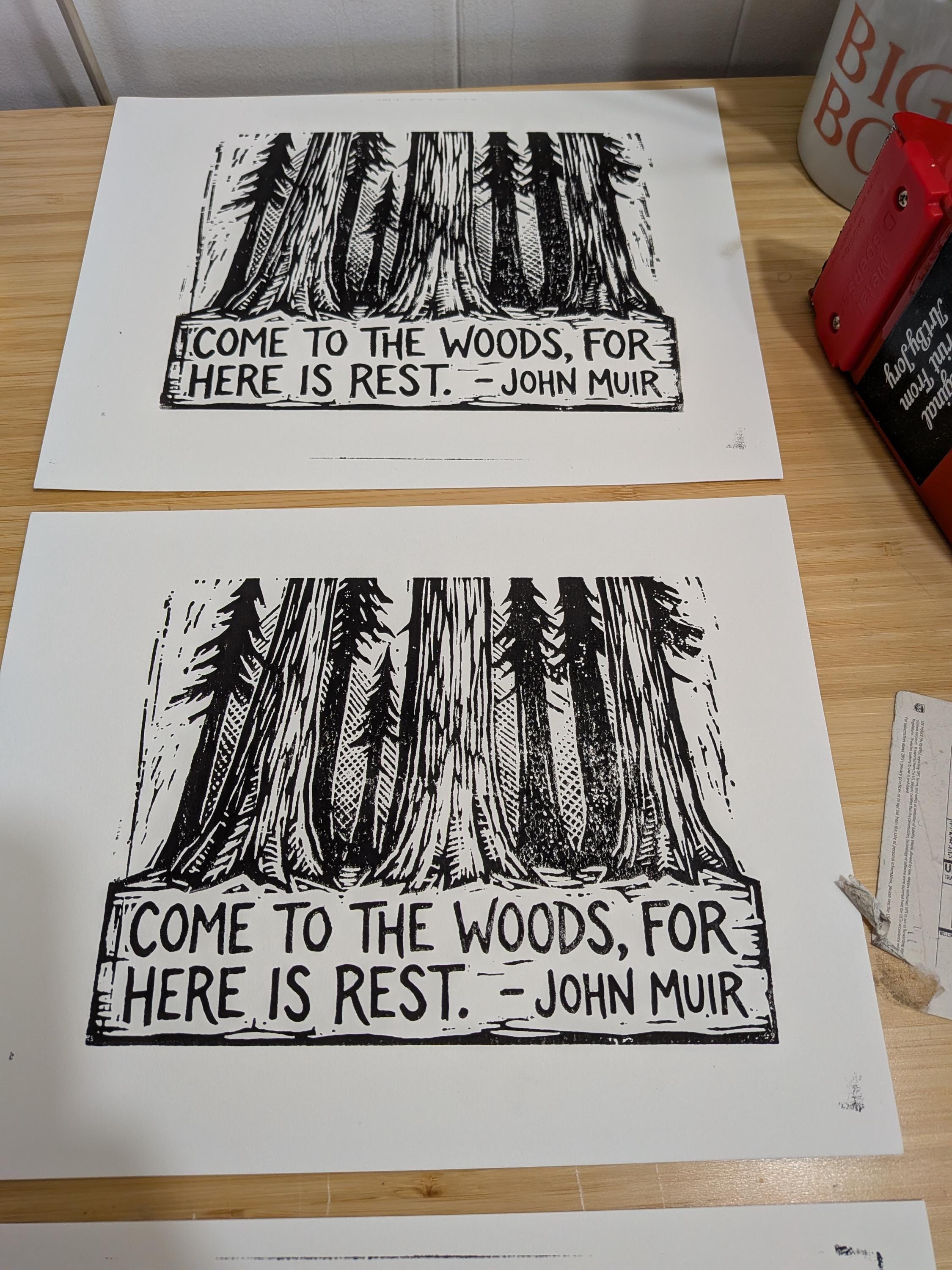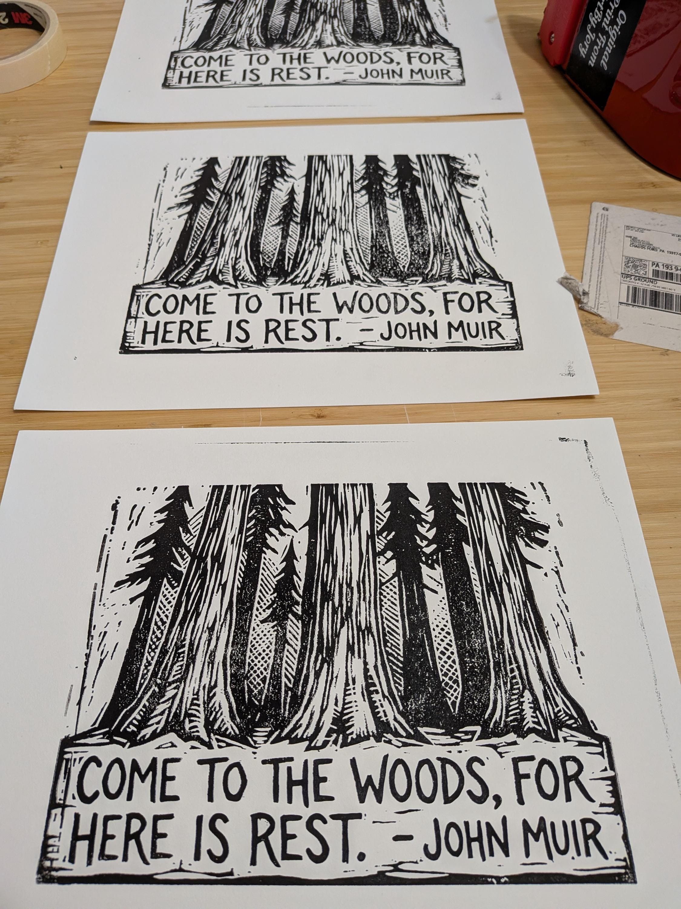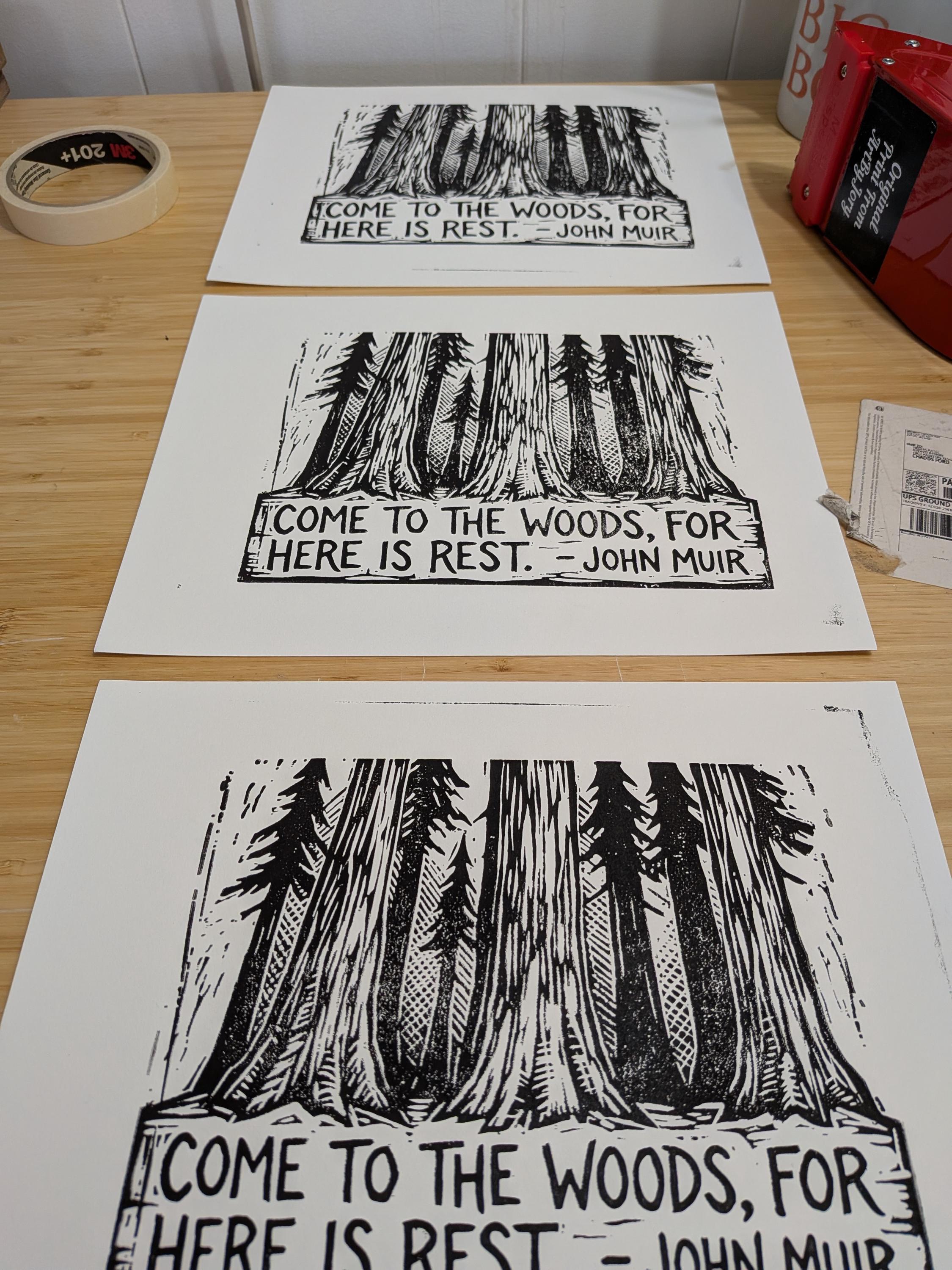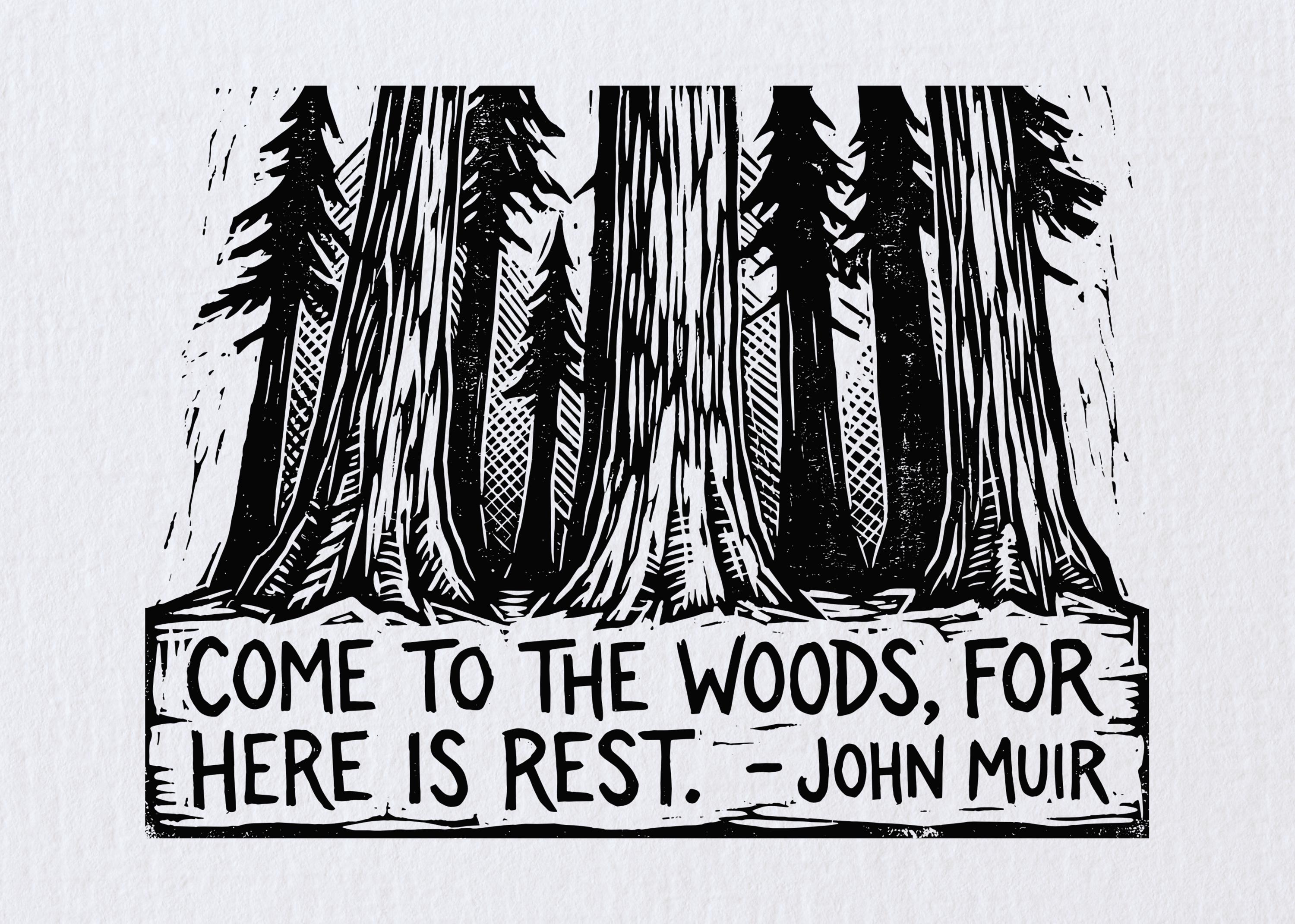 Tags: inspirational quote, relief print art, handmade relief, typography print, John Muir Quote, Forest Artwork, Wilderness Quote, San Francisco, California Redwoods, Redwood Forest, National Parks art, Conservationist art, wildlife quote