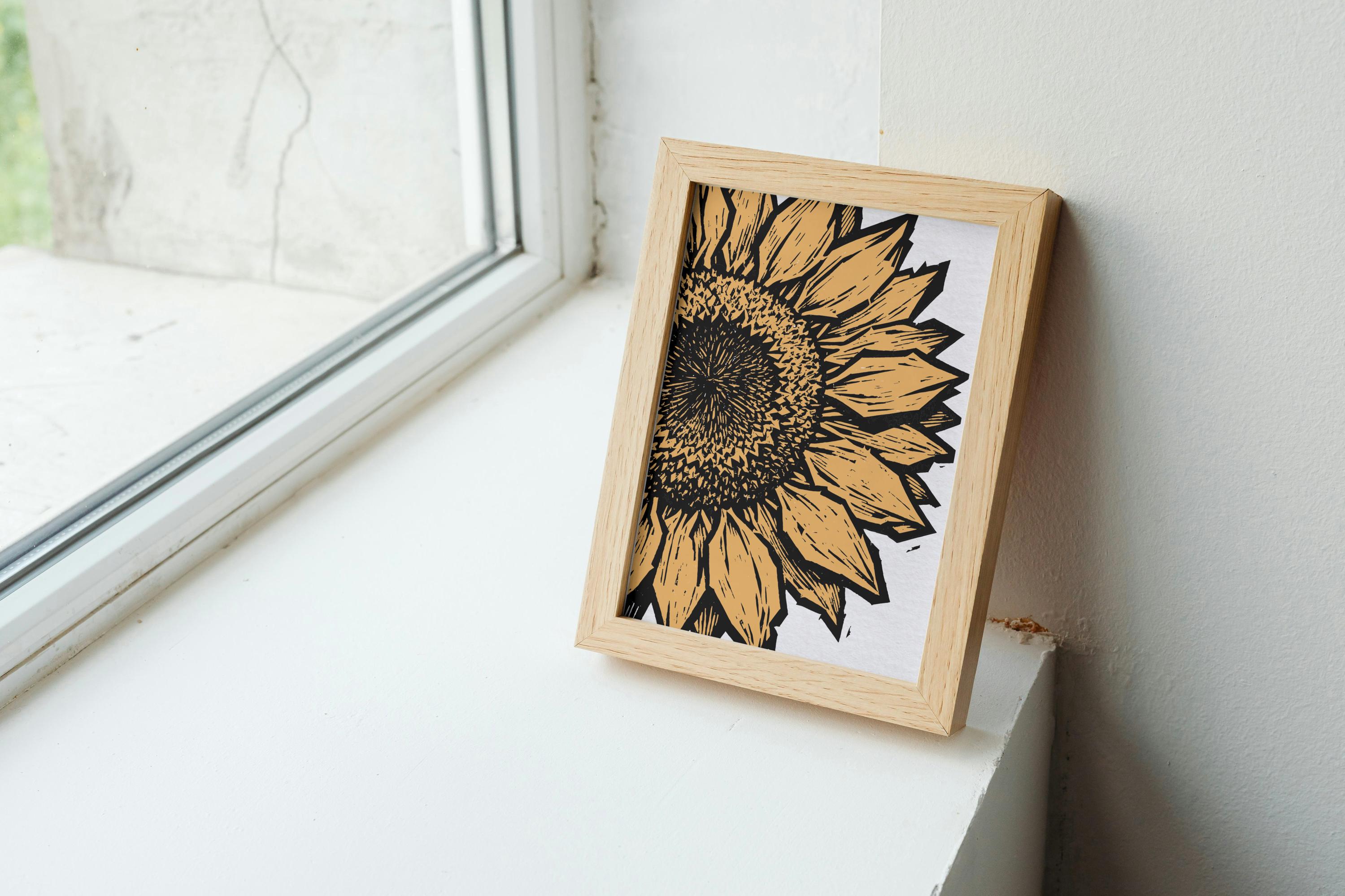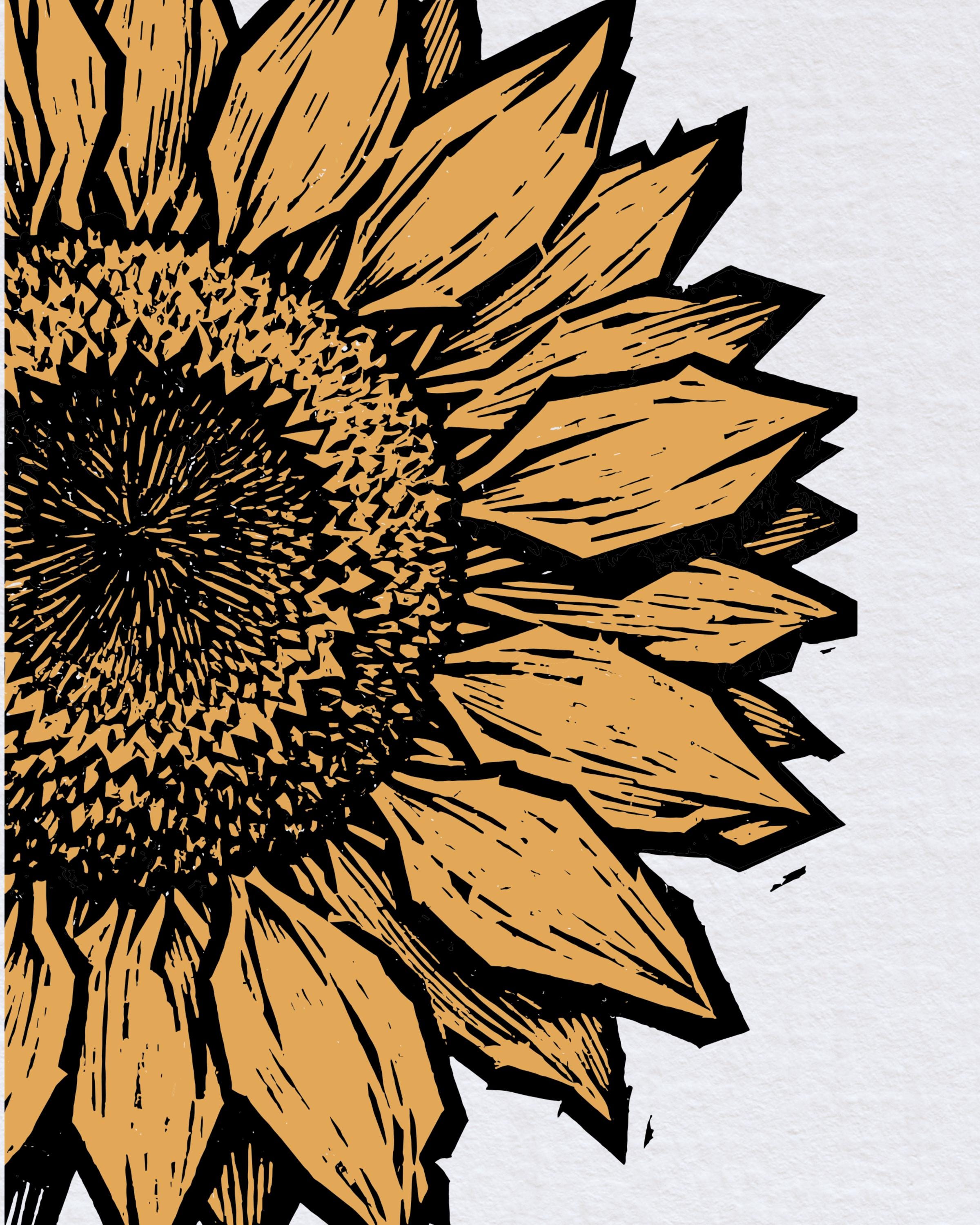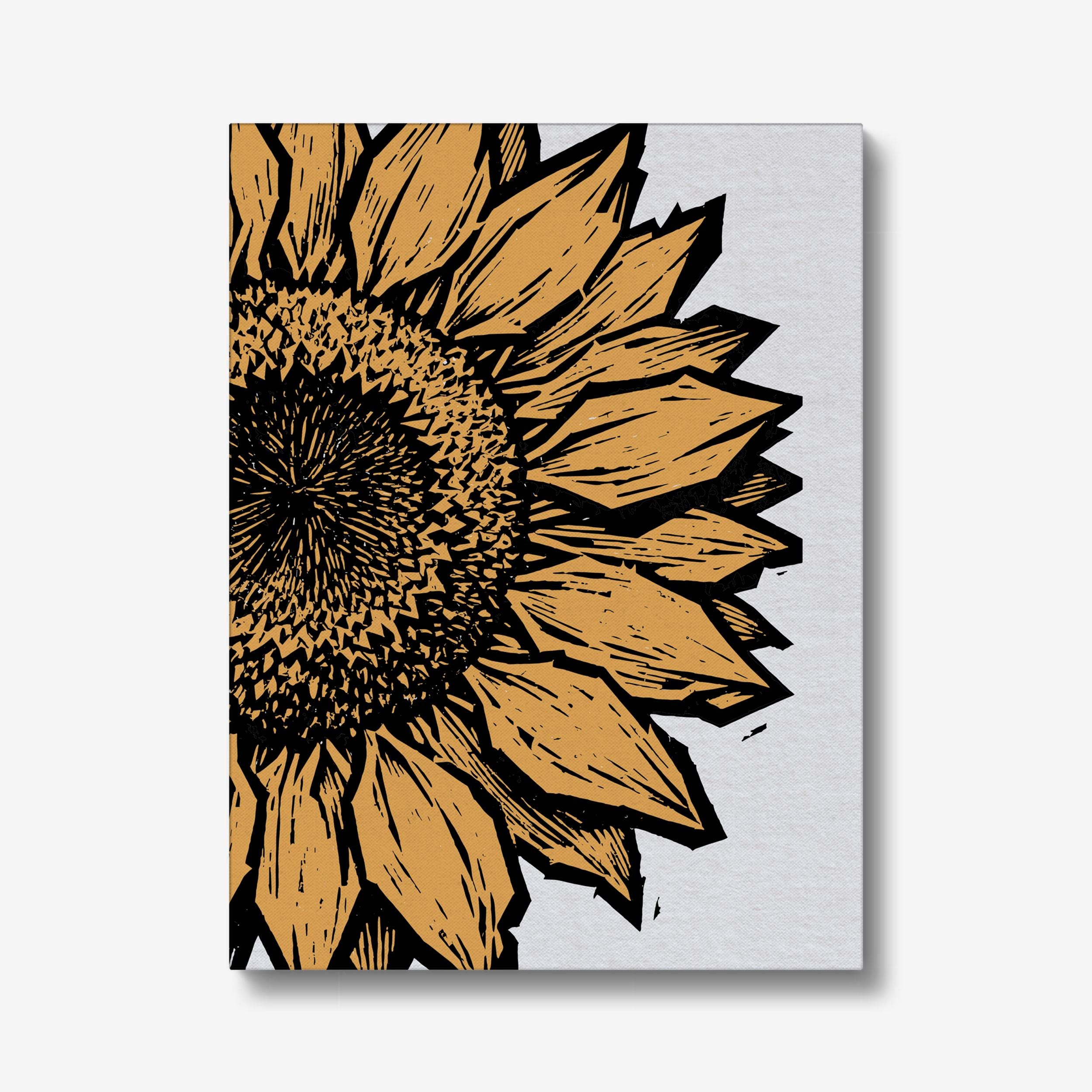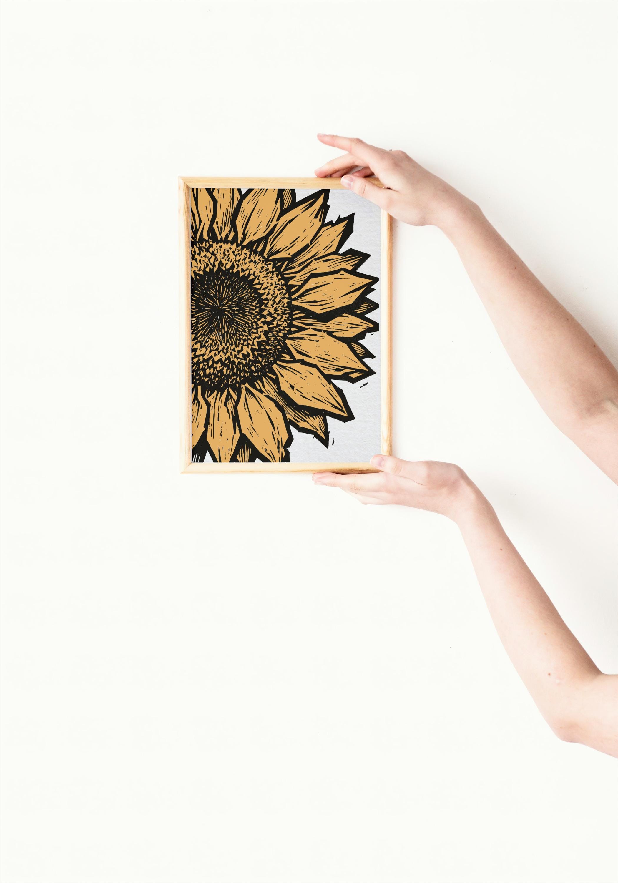 Sunflower Block Print, Black and Yellow Flower Print, 6x8 inches, Perfect for Framing