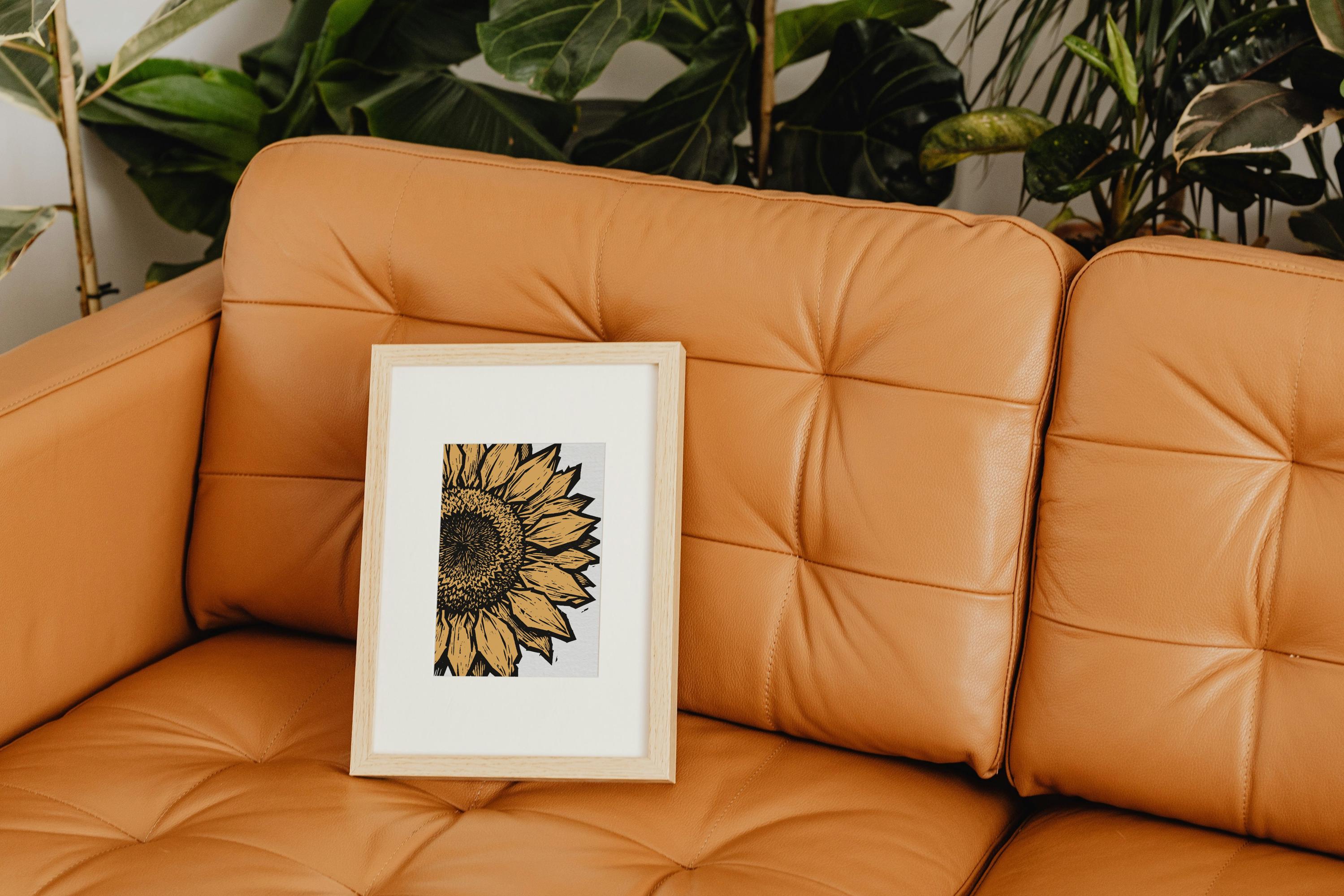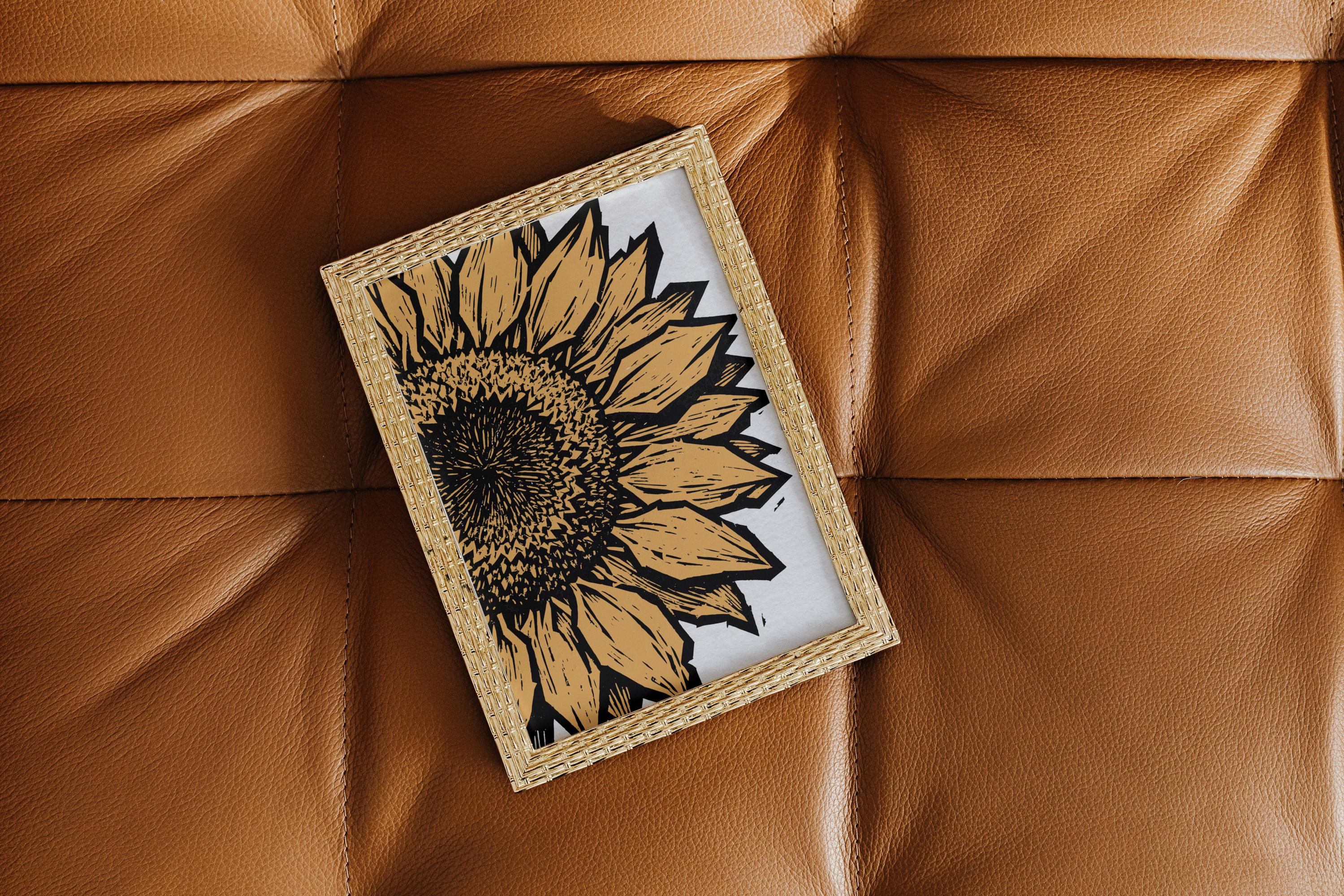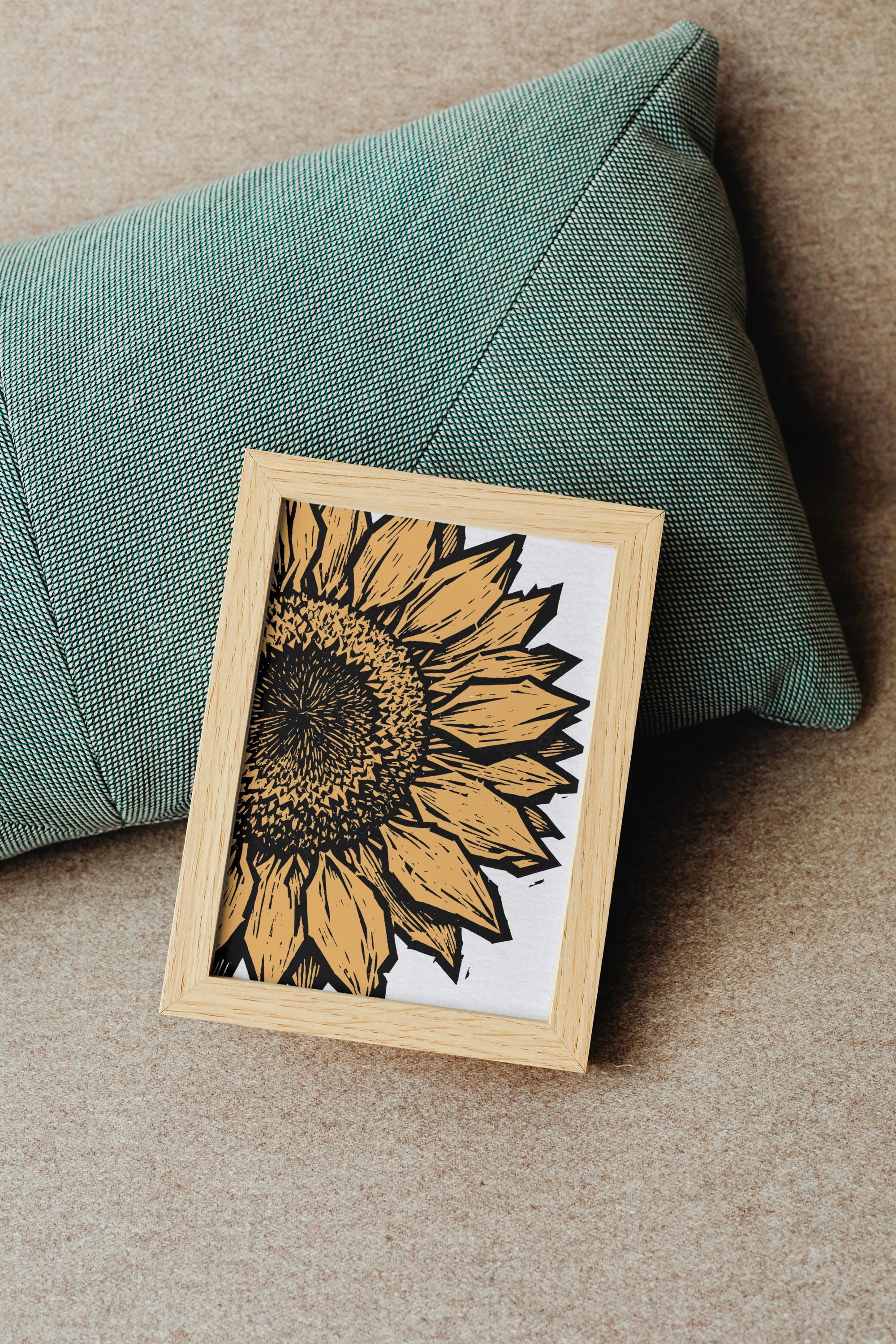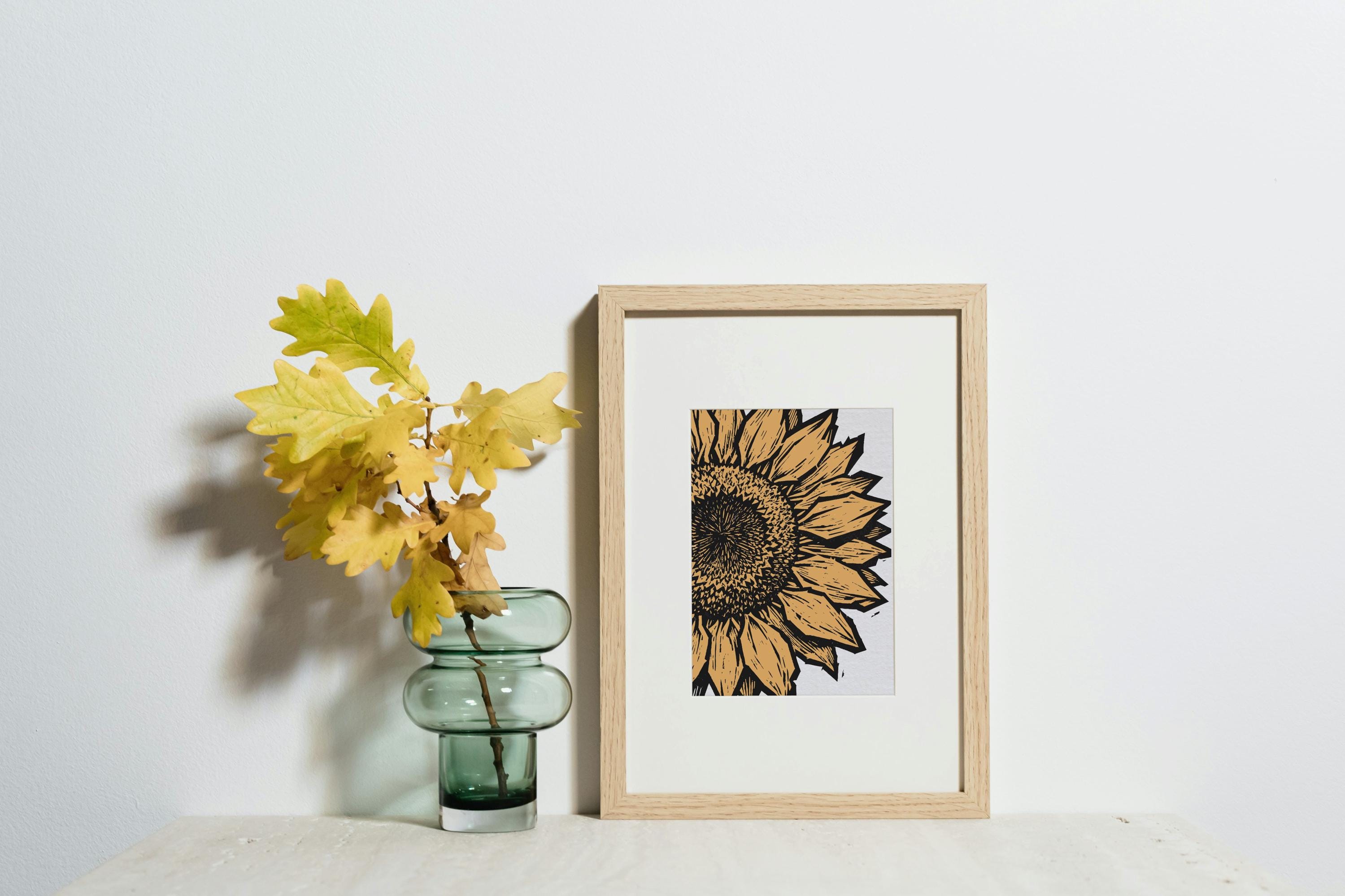 Sunflower Block Print, Black and Yellow Flower Print, 6x8 inches, Perfect for Framing